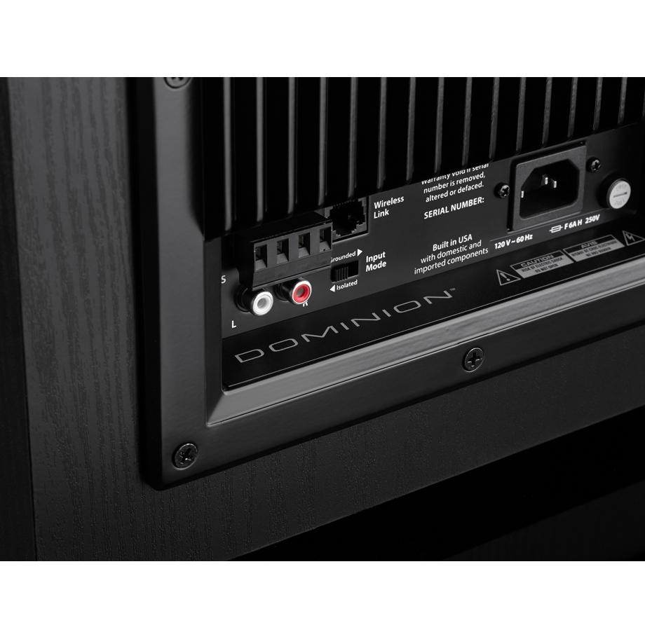 With a host of signal processing features included, Dominion™ powered subwoofers can be integrated into most systems with ease. Low-pass signals are precisely guided, thanks to the onboard crossover’s 24 dB/octave Linkwitz-Riley alignment. Phase and polarity controls are onboard to aid in achieving the optimal acoustic transition between the subwoofer(s) and main speakers. Flexible input options are also on-hand to accept either line-level or speaker-level signals.