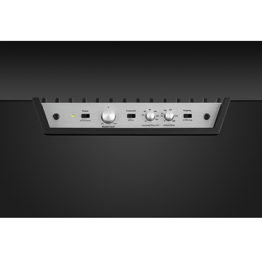 The built-in, active crossover is a true two-way, 4th order Linkwitz-Riley design, with a low-pass filter feeding the subwoofer's amplifier and a high-pass filtered signal exiting through a pair of line outputs. When the on-board crossover is defeated, as is typical in a home theater installation, the line outputs deliver a pass-through signal that permits multiple E-Subs to be interconnected in a ‘daisy-chain' arrangement. Switchable polarity and a fully variable phase control round out the signal processing section. All signal processing is performed in the analog domain, ensuring very low latency in critical applications.